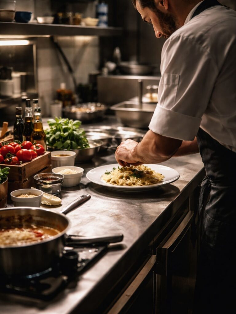 emblématique de la maison. Formé dans les cuisines familiales du Piémont, Antonio cuisine avec la mémoire du goût et le respect des traditions.