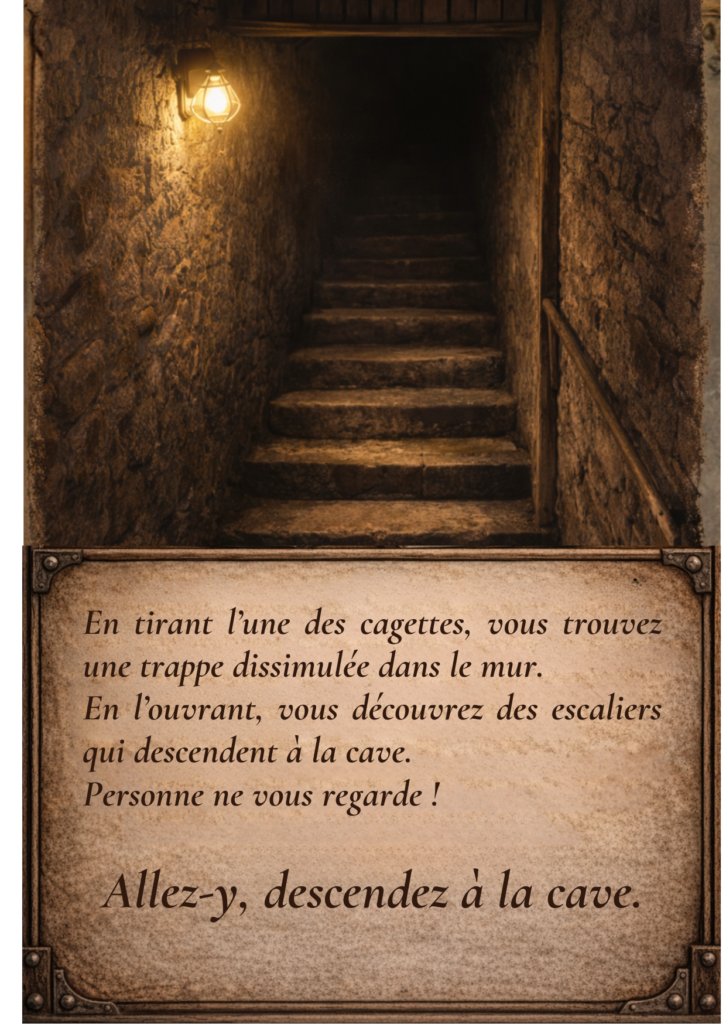 Un escalier vous mène à la cave. Aucune cave n’est inscrit sur le plateau ? Avez-vous pensé à regardez sous celui-ci ?