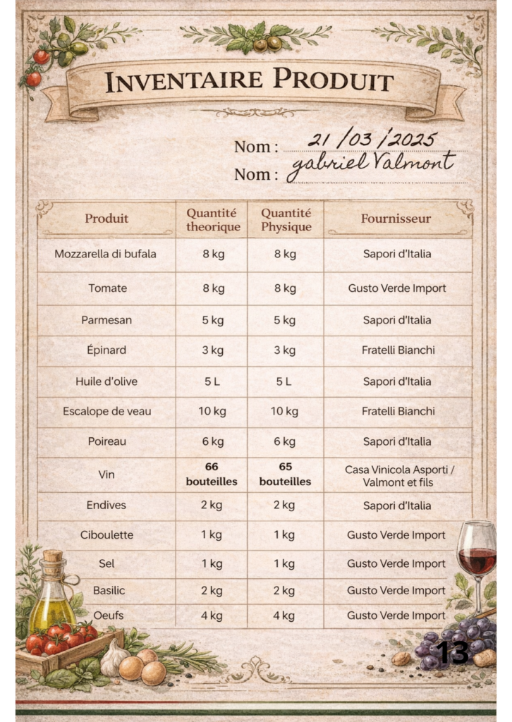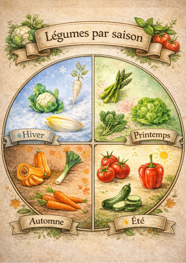 Additionnez les quantités des ingrédients de chaque saison présentes sur l’inventaire. Ex : poireau 6kg.