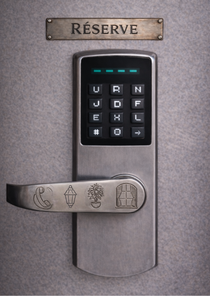 Le code de la porte de la réserve est un code à 4 lettres. En regardant bien dans la boite de jeu vous devriez trouver des lettres cachés dans le décor.